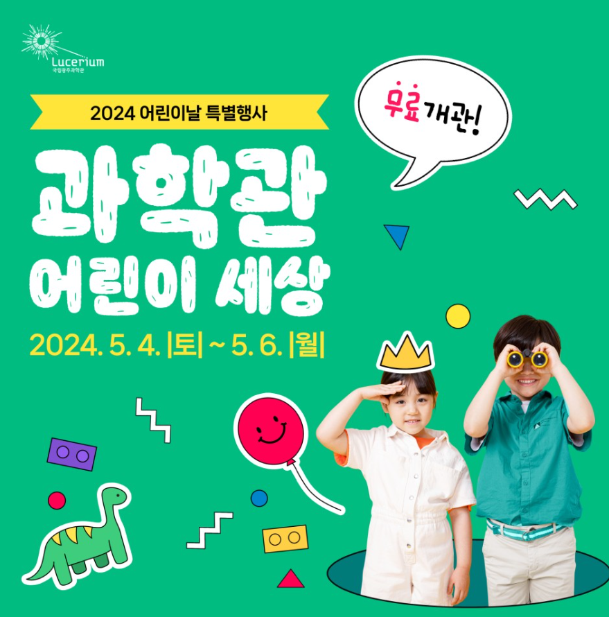 - 첨단 과학관에서 어린이날 특별행사 '어린이 세상'을 5.4~5.6 동안 진행합니다. 물론 무료개관은 덤입니다.!