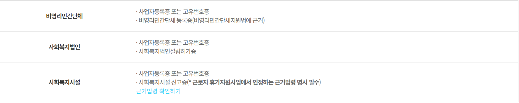 • 소상공인 및 사회복지법인상 사회복지법인 및 시설은 대표자도 참여가능