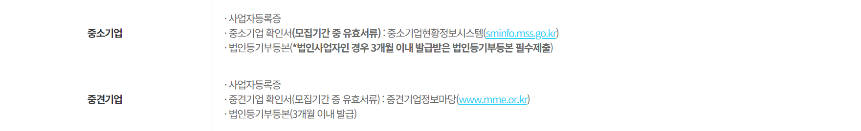 • 단, 법인이 아닌 중소기업, 비영리민간단체는 대표자만 참여 제외