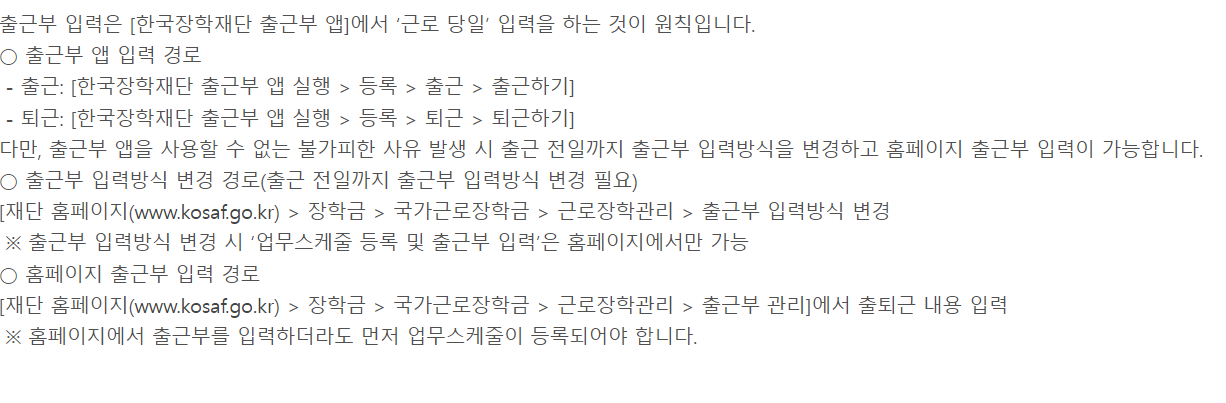 • 대리근로 : 선발된 근로장학생 본인이 아닌 타인이 근로를 대신한 경우