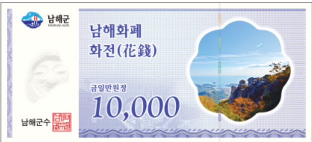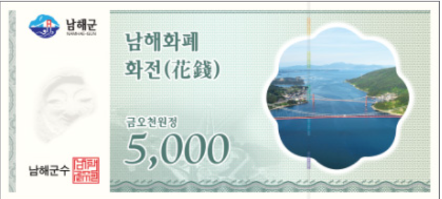 - 지급 수단: 남해사랑상품권 '화전' (지류형)