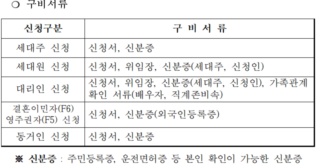 - 신청 시 필요 서류: 주민등록증, 운전면허증 등 신분증