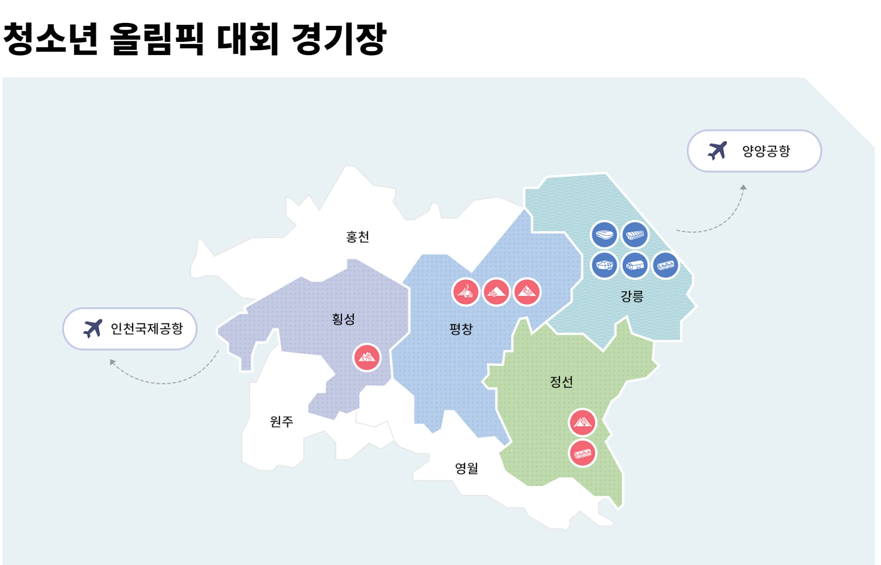 각 종목별 경기장 안내는 아래와 같습니다.