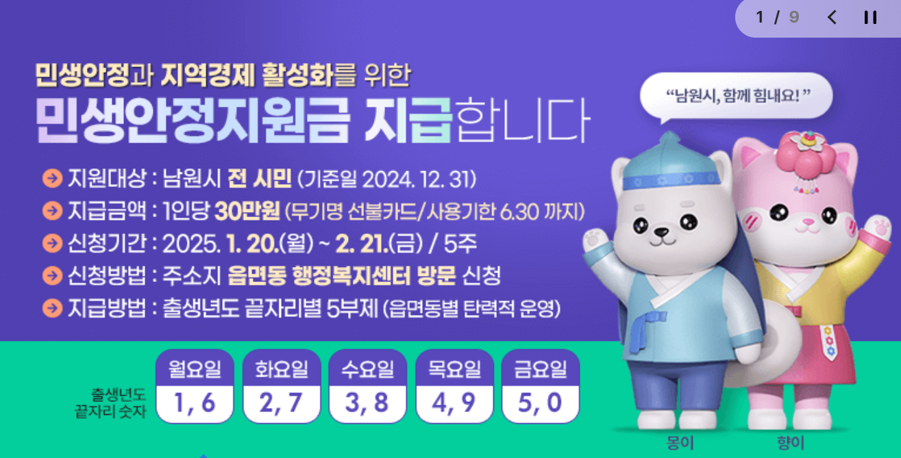 - 대상 : 2024년 12월 31일 기준 남원시에 주민등록이 되어 잇는 시민(영주권자 및 결혼이민자 포함)