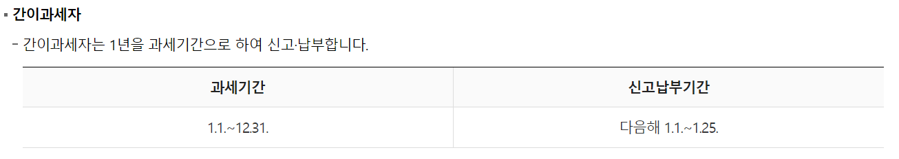 - 납세의무자 : 영리목적의 유무에 불구하고 사업상 상품(재화)의 판매나 서비스(용역)를 제공하는 모든 사업자