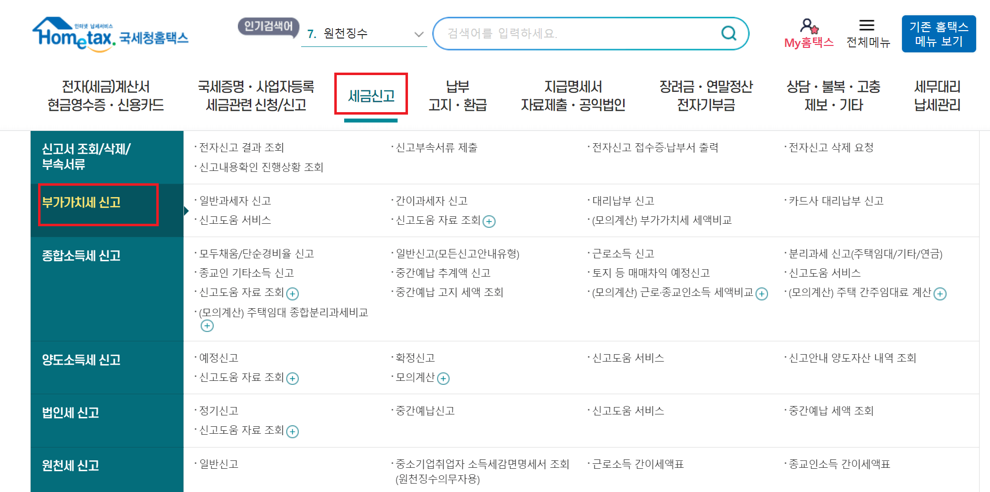 홈택스 로그인 > 세금신고 > 부가가치세 신고 > 신고도움자료조회 > 부가가치세 예정고지(부과) 대상자 조회