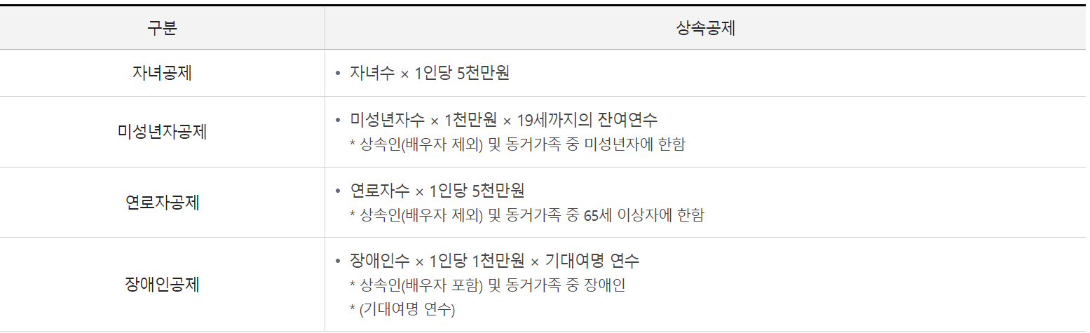 - 배우자가 실제 상속받은 금액이 5억원 이상인 경우 : 실제 상속받은 금액 공제