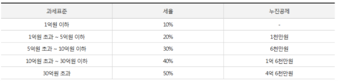 - 상속세 과세표준 x 세율 = 상속세 산출세액