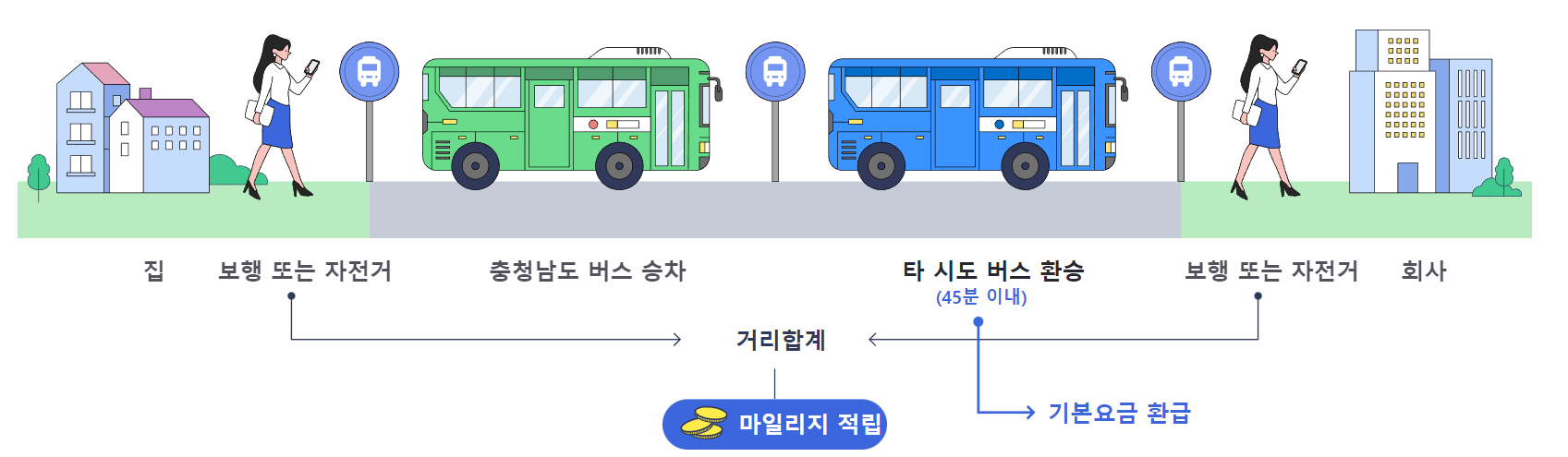 • 경기 대전 세종 충북 전북 버스로 환승 시 환승한 대중교통의 기본요금 환급