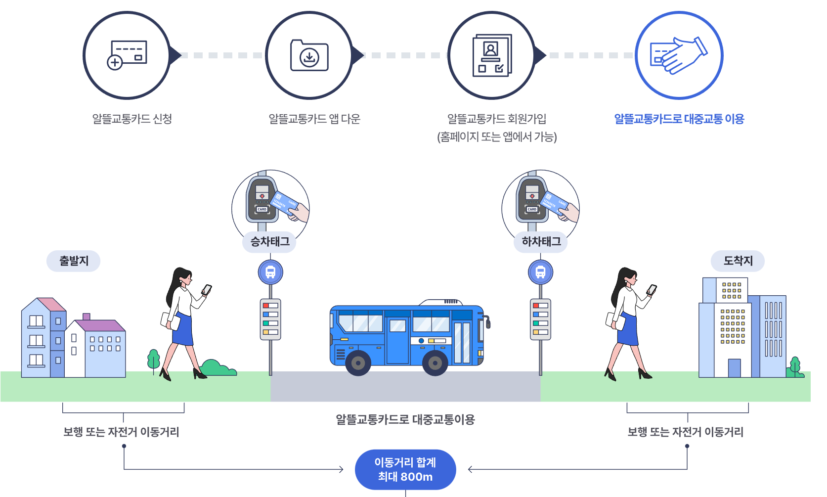 - 적립기준 : 대중교통 1회 이용 시 이동거리 최대 800m까지 인정