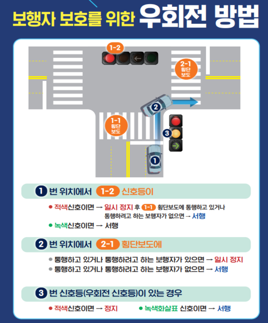 일단 일시정지! 가 포인트인 것 같습니다. 우회전 신호등이 설치된 곳은 잘 지켜지고 있었으나