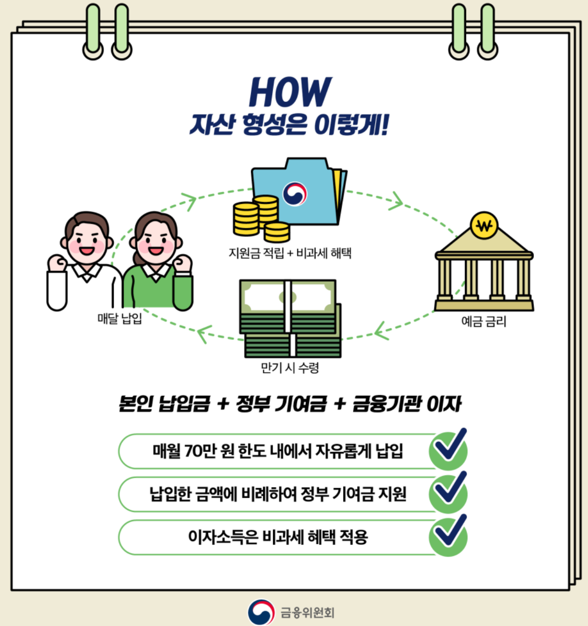 매달 일정 금액 5년간 납입하면 은행이자 + 정부지원금까지.!!
