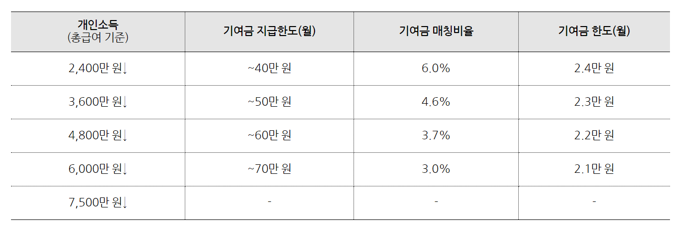 * 개인소득 6,000~7,500만원, 기준 중위소득 180% 이하 청년도 가입가능 ( 이자소득 비과세 혜택만 부여)