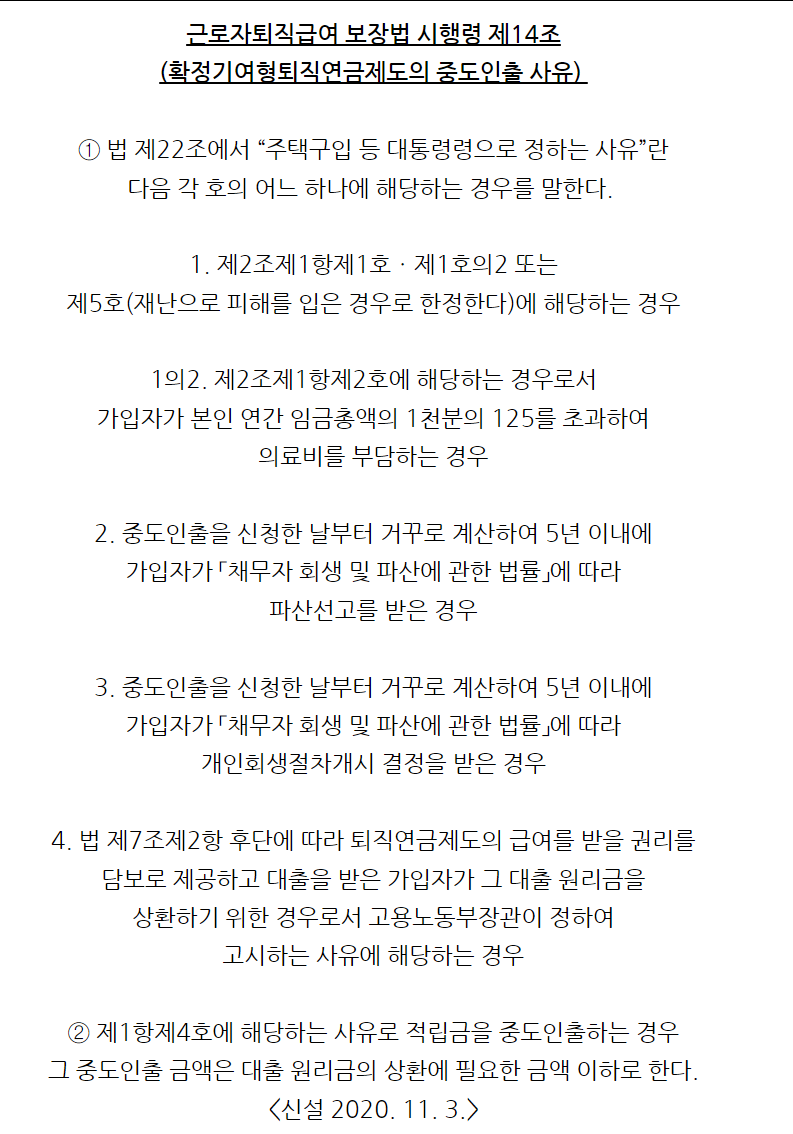 - 법정사유에 따라 중도인출 가능