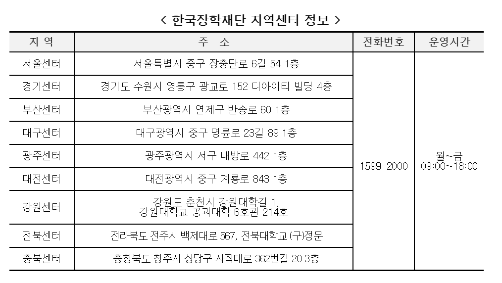 | 신청방법 | 재단 누리집(https://www.kosaf.go.kr)과 ‘한국장학재단’ 앱을 통해 국가장학금 Ⅰ·Ⅱ유형 및 다자녀 국가장학금 통합 신청 |